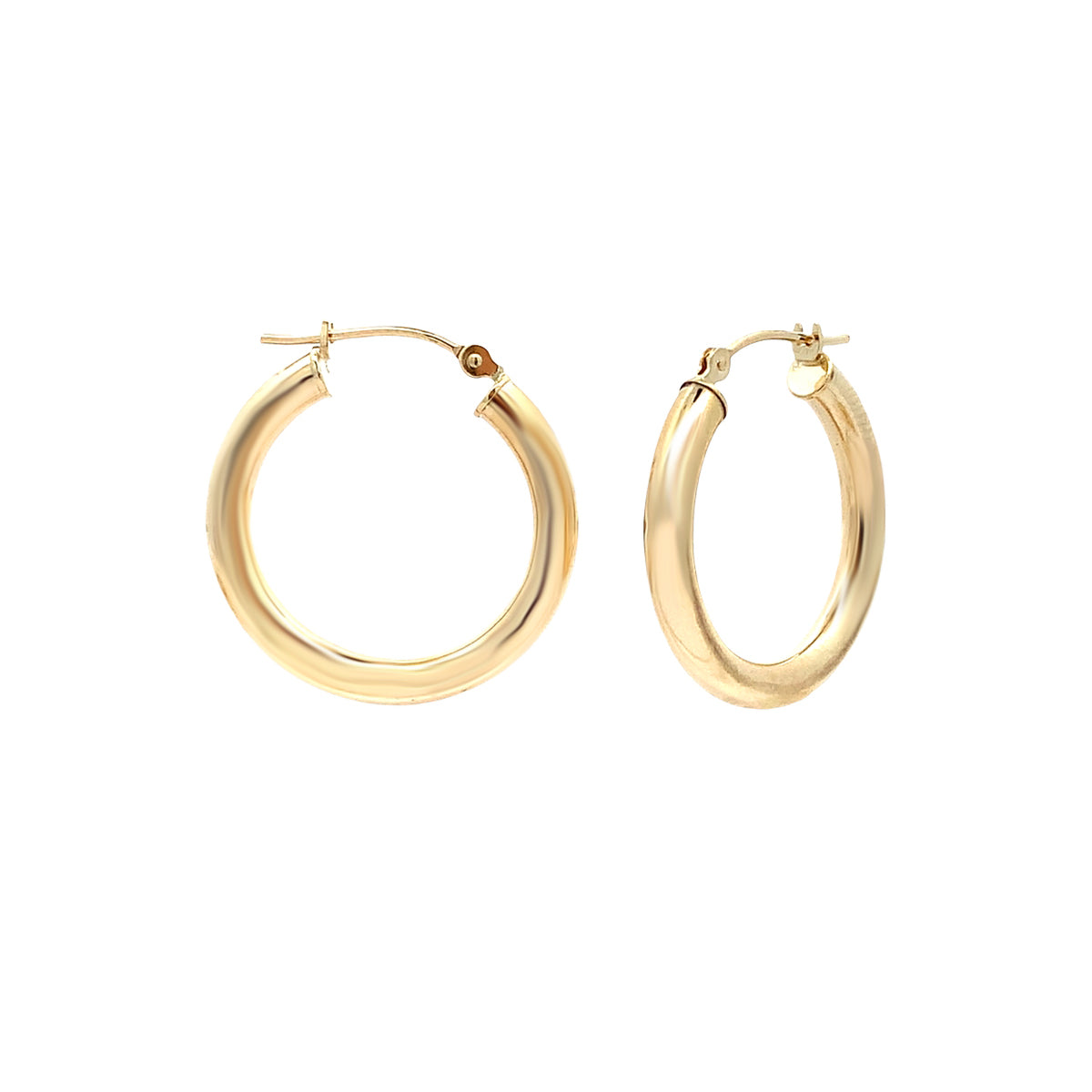 Classic 14kt yellow gold 7/8" shiny Vintage tube hoops. The perfect size for everyday wear.