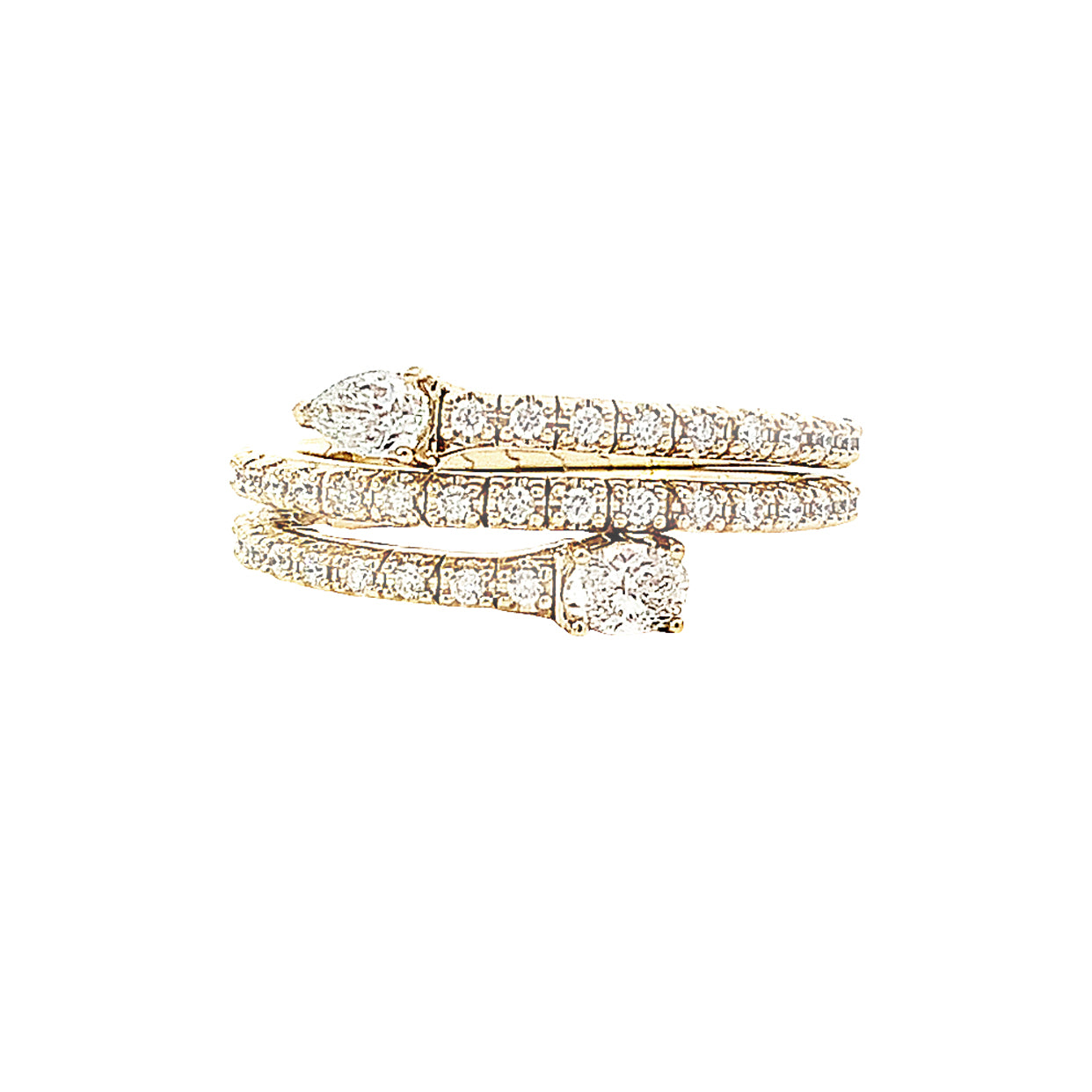 14k yellow gold 1/2ct diamond 3-row coiled flex ring with pear and oval diamond ends (Titanium core for flexibility), size 6