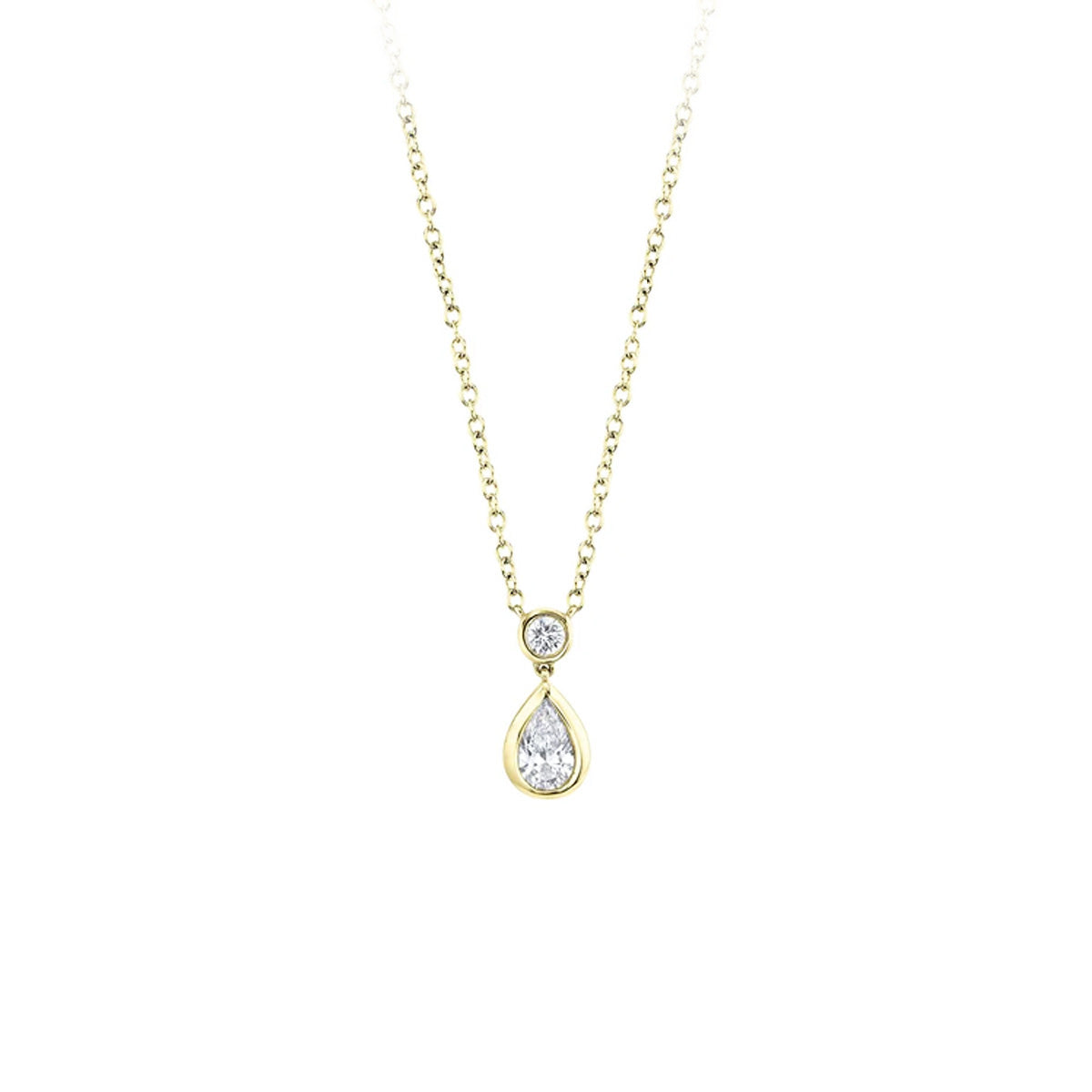 14k yellow gold 18" 2-stone 0.29ct round and pear diamond necklace