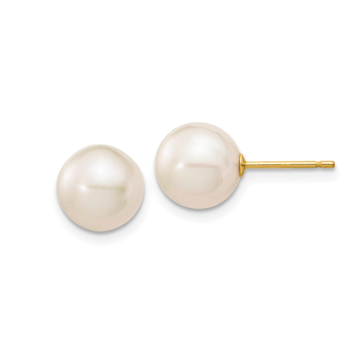 14k yellow gold 9mm round Freshwater pearl stud earrings