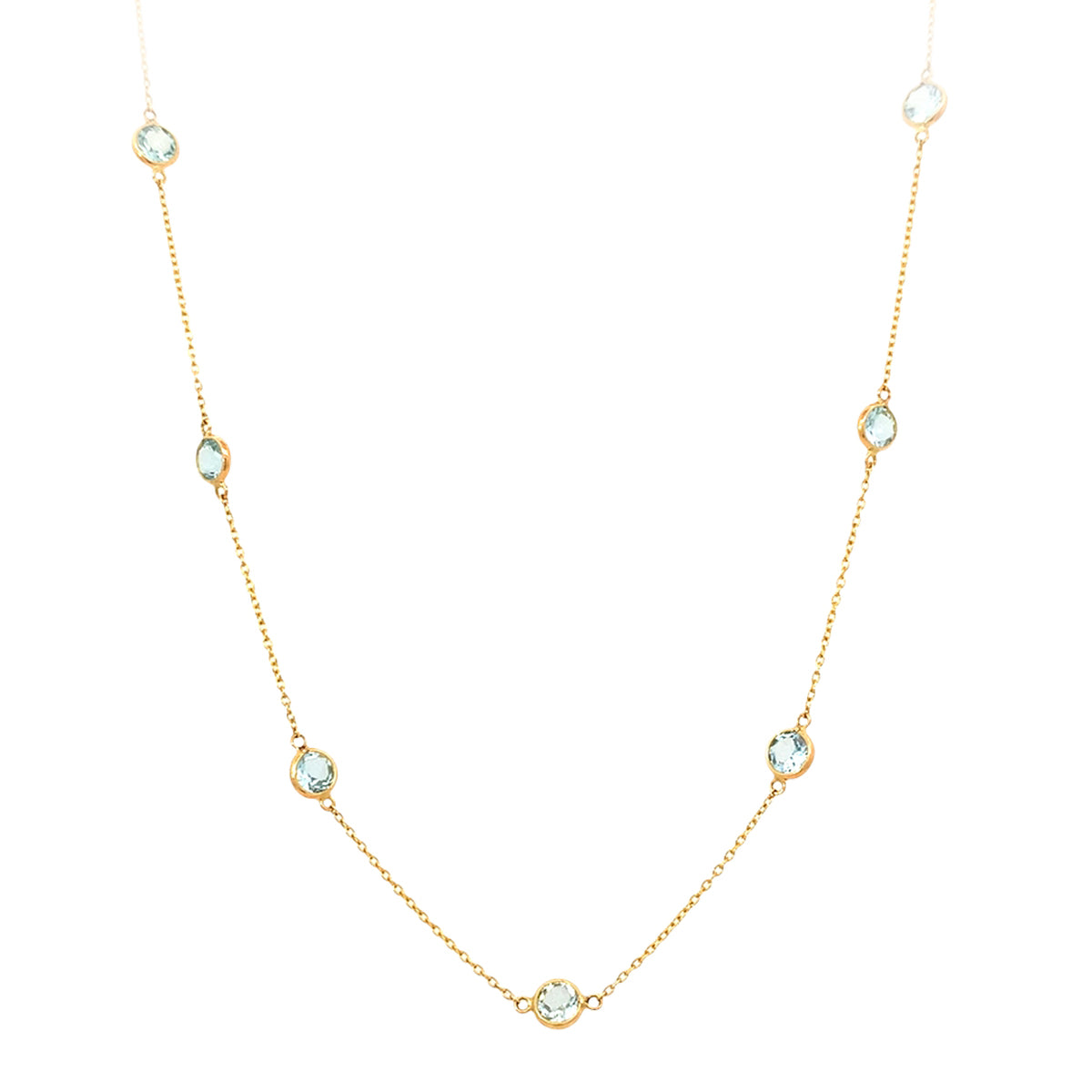 18kt yellow gold 18" necklace by Tresor Collection with 3.29cts round aquamarine stations