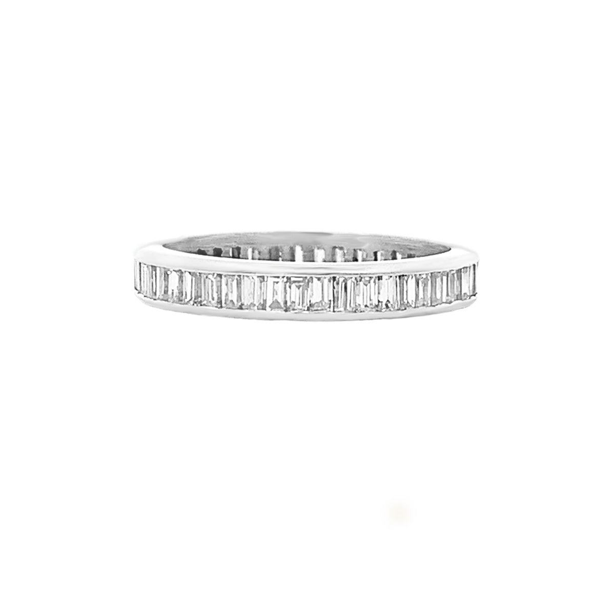 Classic platinum 3.5mm Vintage 2.35ct baguette channel-set diamond eternity band, size 7.5 (no sizing)