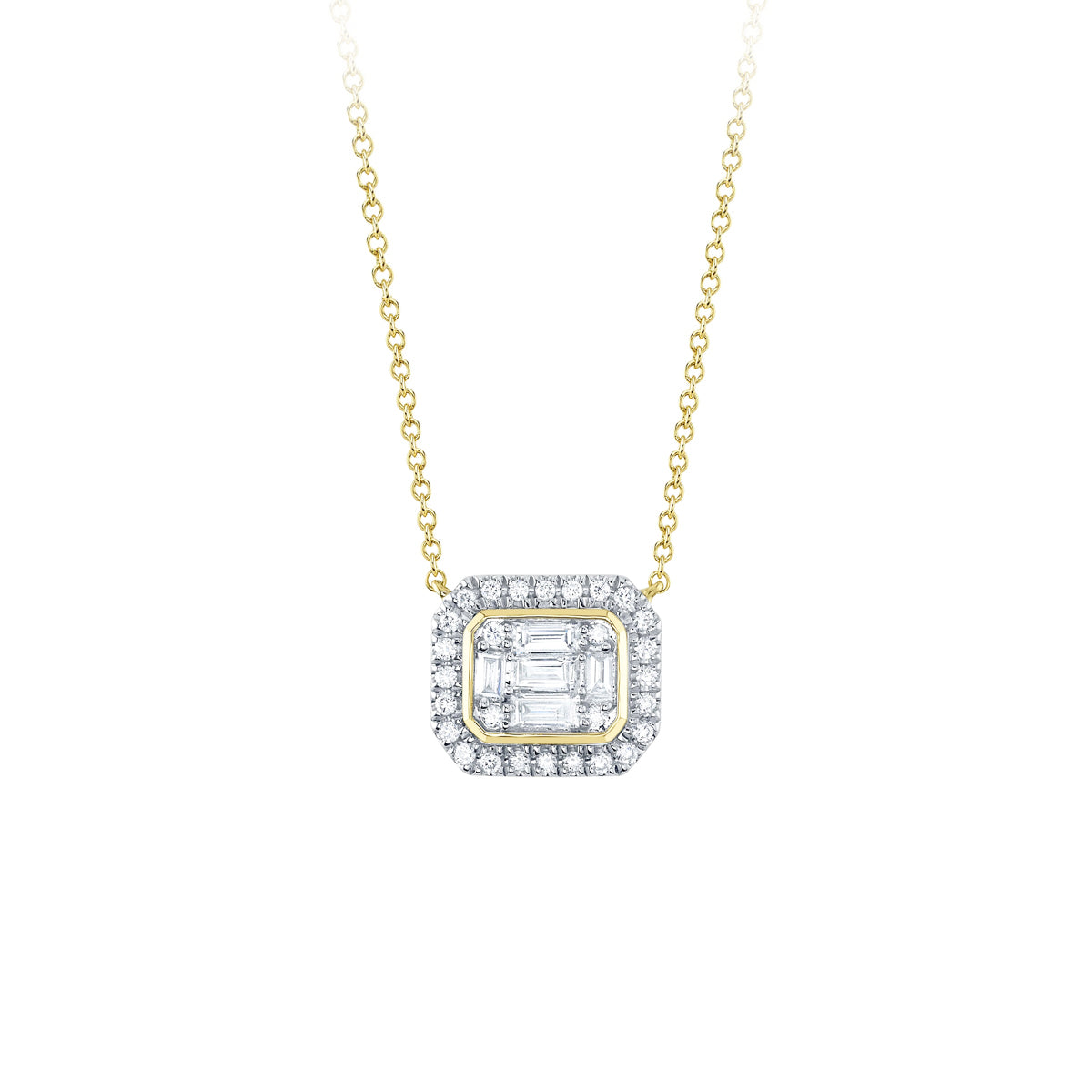 14k yellow gold 18" 0.41ct baguette & round diamond halo style necklace by Shy Creation