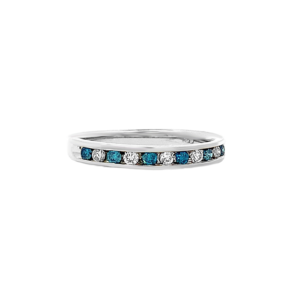 14kt white gold 3mm Vintage channel-set band with 0.28ct white & irradiated blue diamonds, size 7