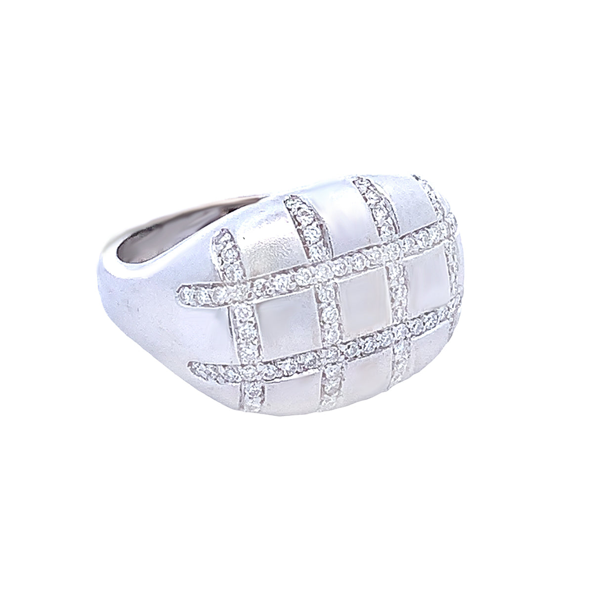 18k white gold matte finish Vintage cushion dome ring with 0.39ct diamond "checkerboard" pattern, size 7