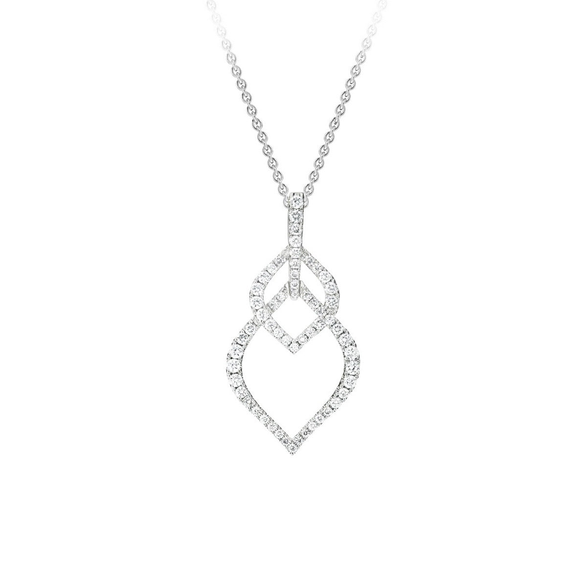 14k white gold 18" 0.46ct open "double leaves" pendant on cable link chain
