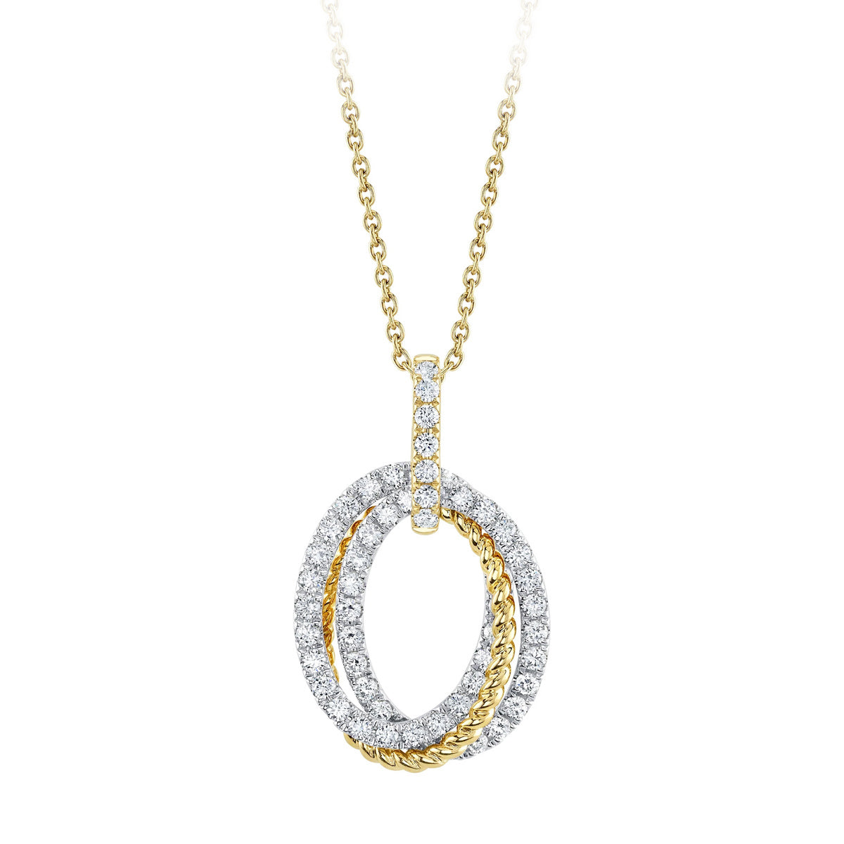 14k 18" 2-tone triple oval 1ct pave diamond pendant by Shy Creation