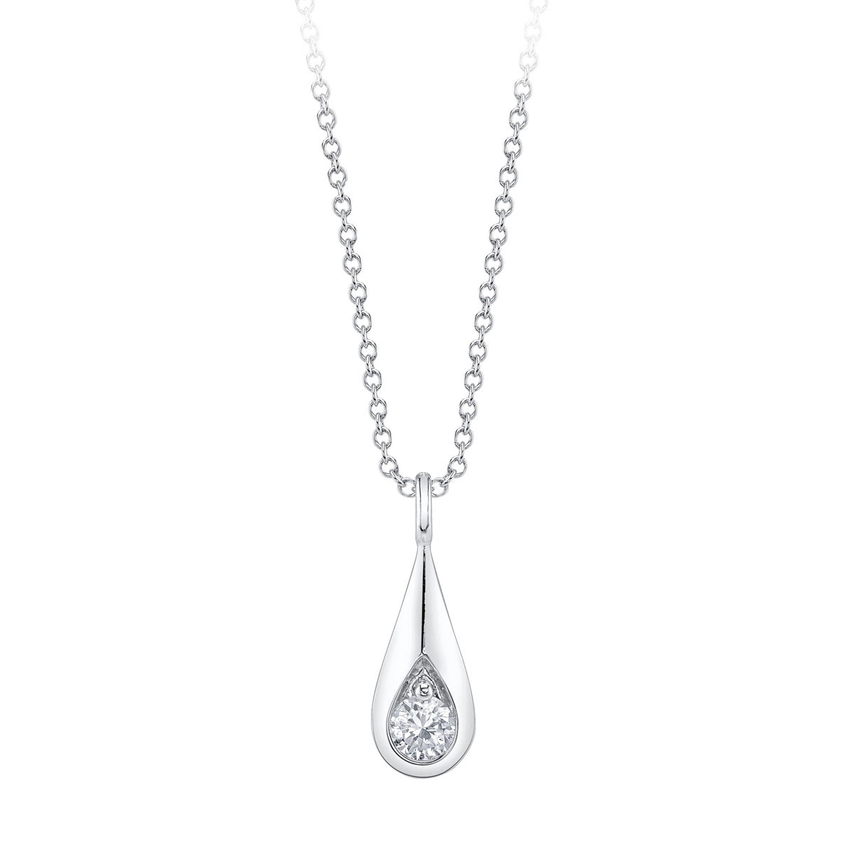 14k white gold 18" small teardrop pendant with single 0.20ct diamond
