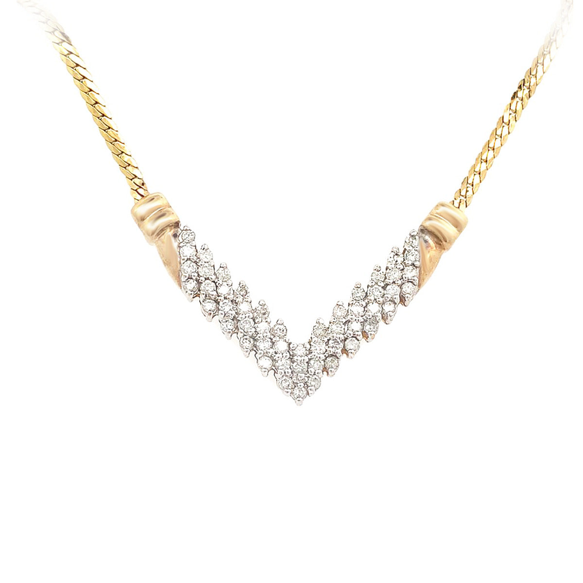 10k yellow gold 18" Vintage 0.75ct diamond "V" necklace