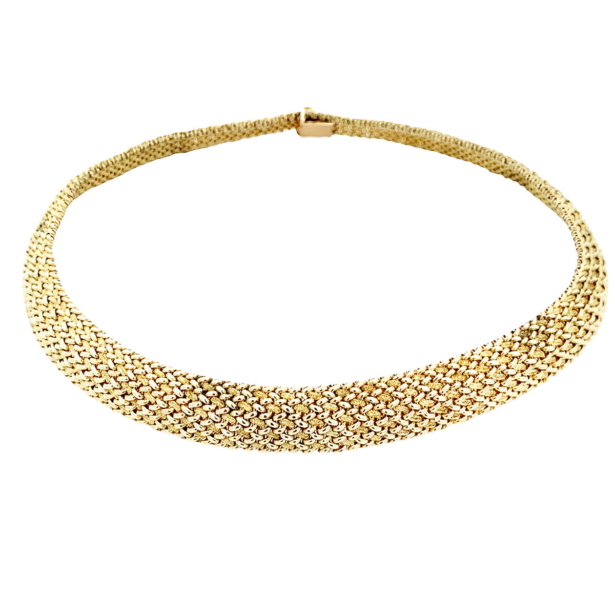 Beautiful 14kt yellow gold 16" wide, domed & textured heavy Vintage mesh necklace