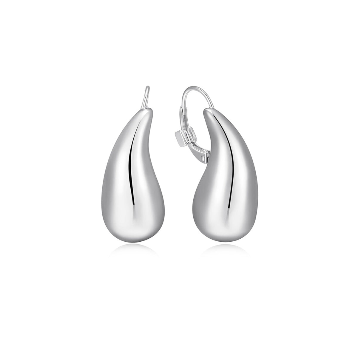Sterling silver Elle shiny large puffed teardrop wire drop earrings