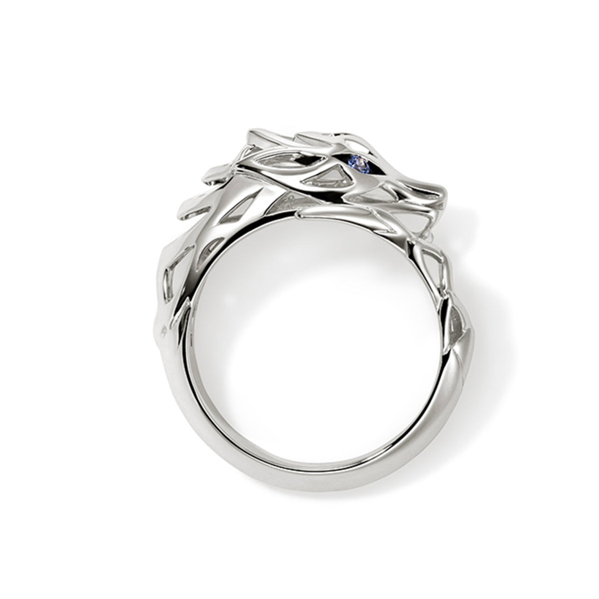 Sterling silver John Hardy "Naga Heritage" dragon tail ring with blue sapphire eyes, Size 7