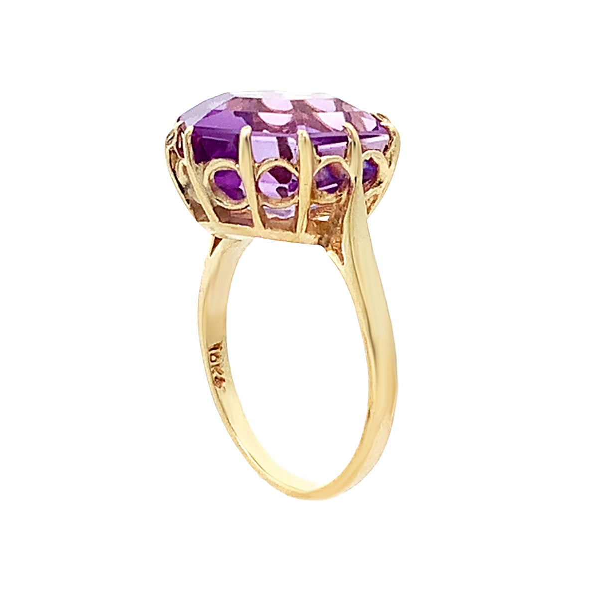 10ky gold unique Vintage hexagonal amethyst solitaire ring, size 7.5