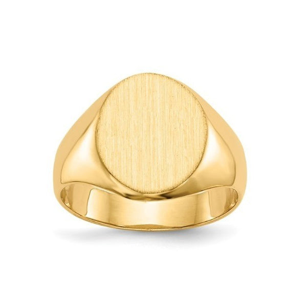 14kt yellow gold 11 x12.5mm closed back oval signet ring, size 9