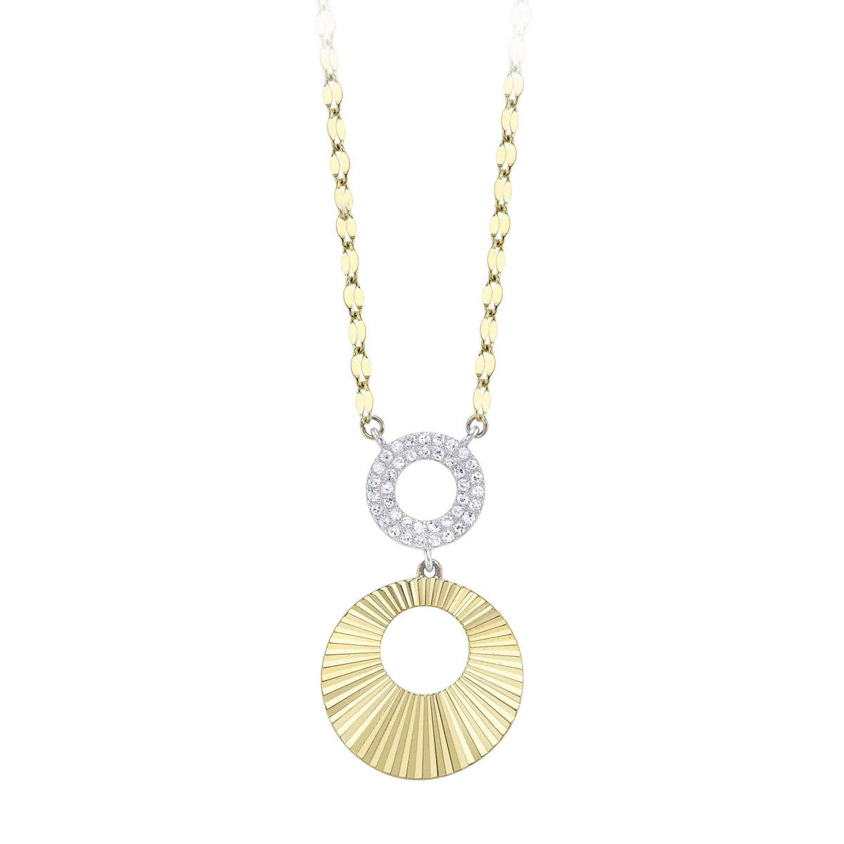 14k 18" white & fluted yellow gold 0.09ct pave diamond 2-circle necklace