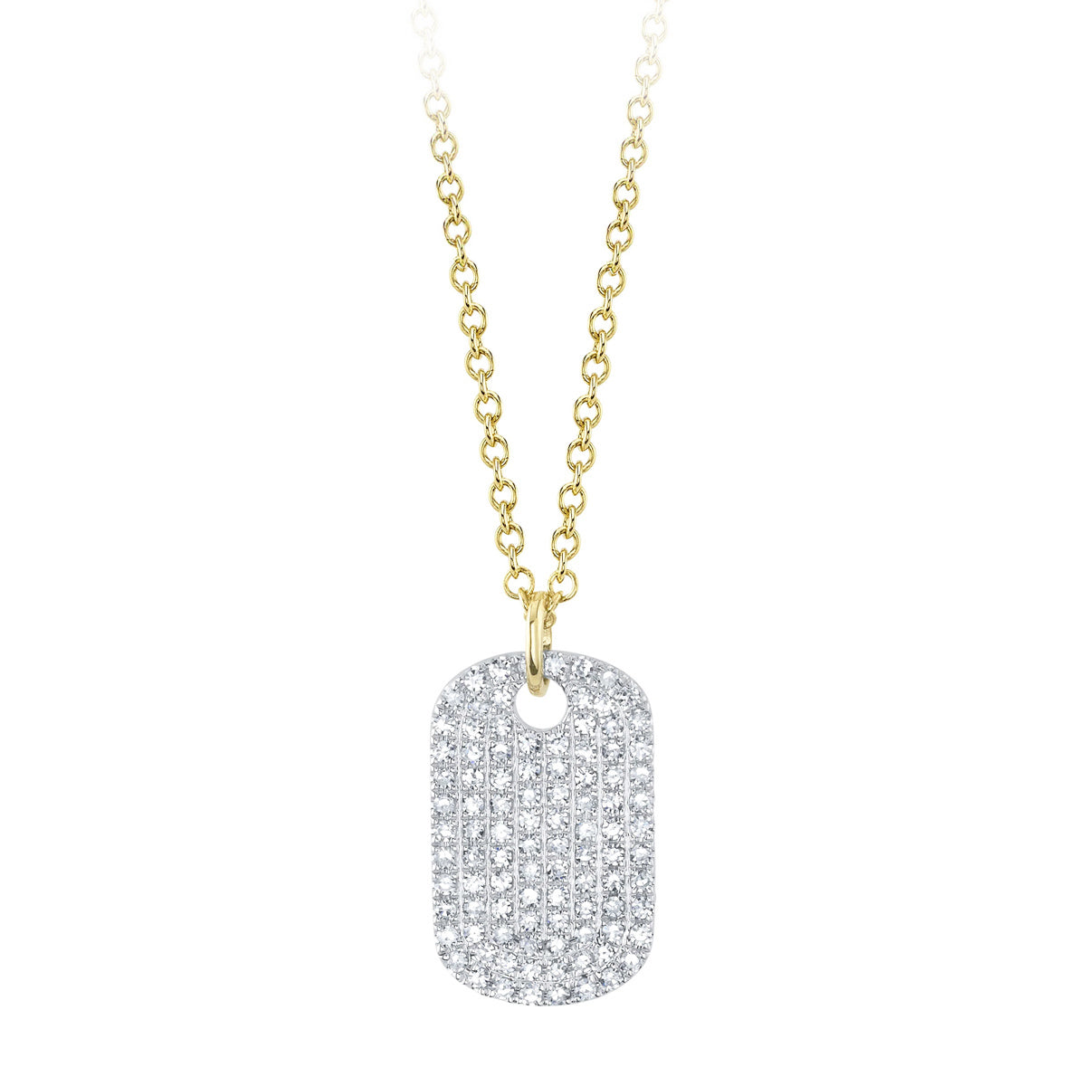 14k yellow gold 18" small 0.22ct pave diamond dog tag pendant