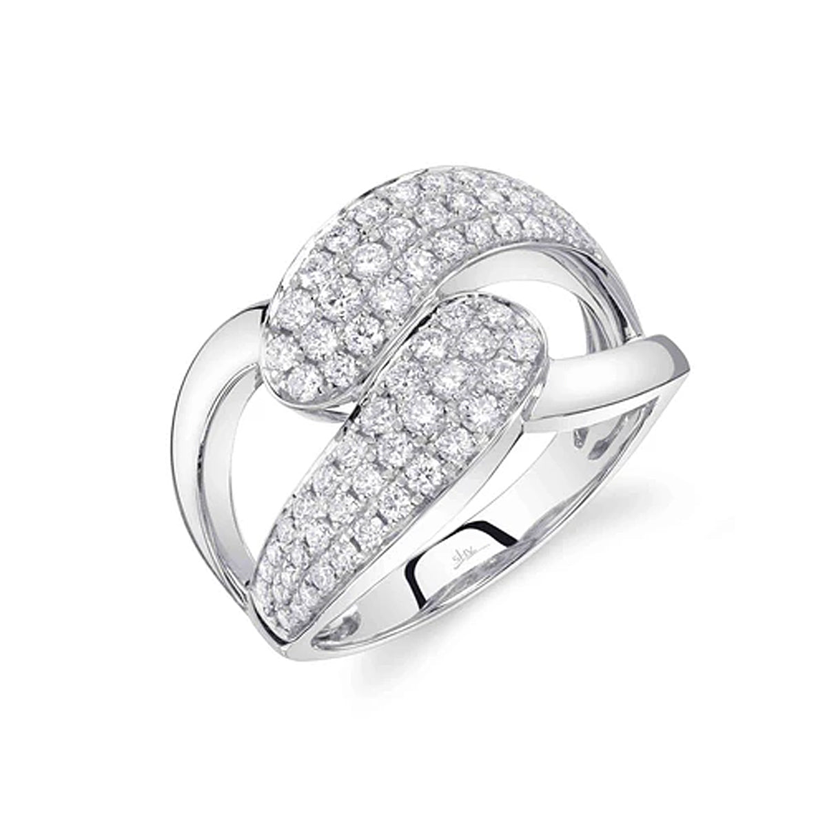 14k white gold 0.88ct pave diamond double loop fashion ring, size 7