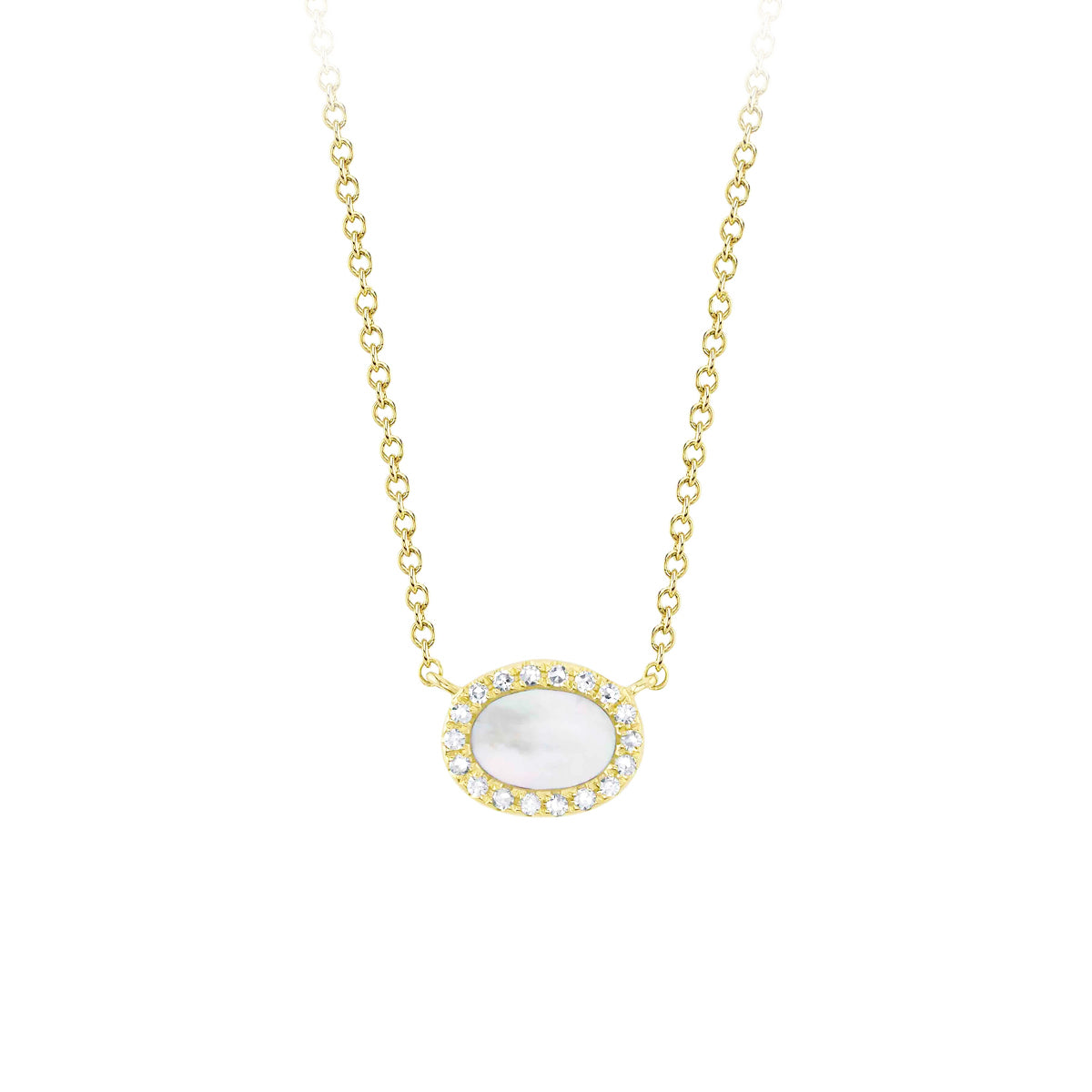 14k yellow gold 18" small oval mother-of-pearl halo necklace with 0.05ct diamond by Shy Creation