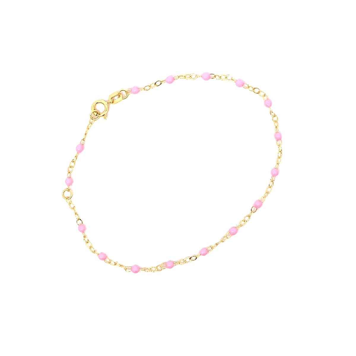 14k yellow gold 7.5" baby pink enamel bead station "Piatto" bracelet