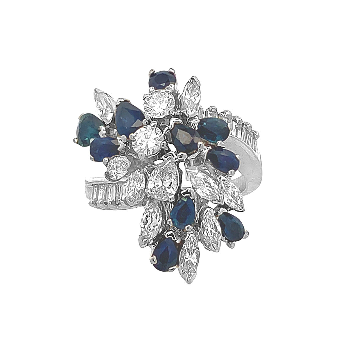 Spectacular 14kt white gold Vintage sapphire & 1.70ct diamond large "Waterfall" style cluster Statement ring, size 7