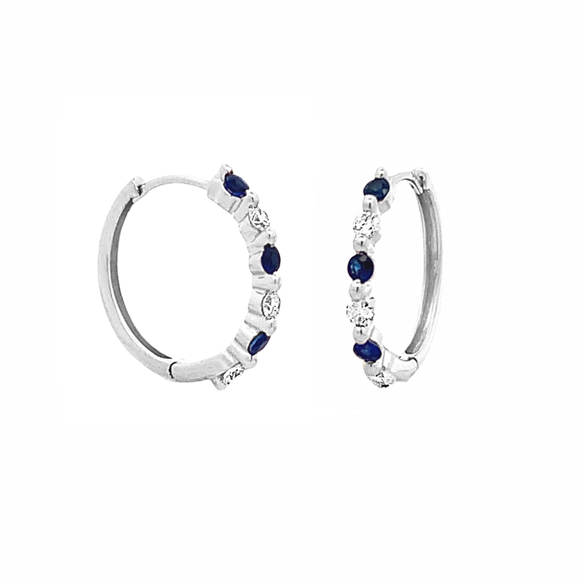 14kt white gold 5/8" sapphire & 0.23ct diamond hinged hoops
