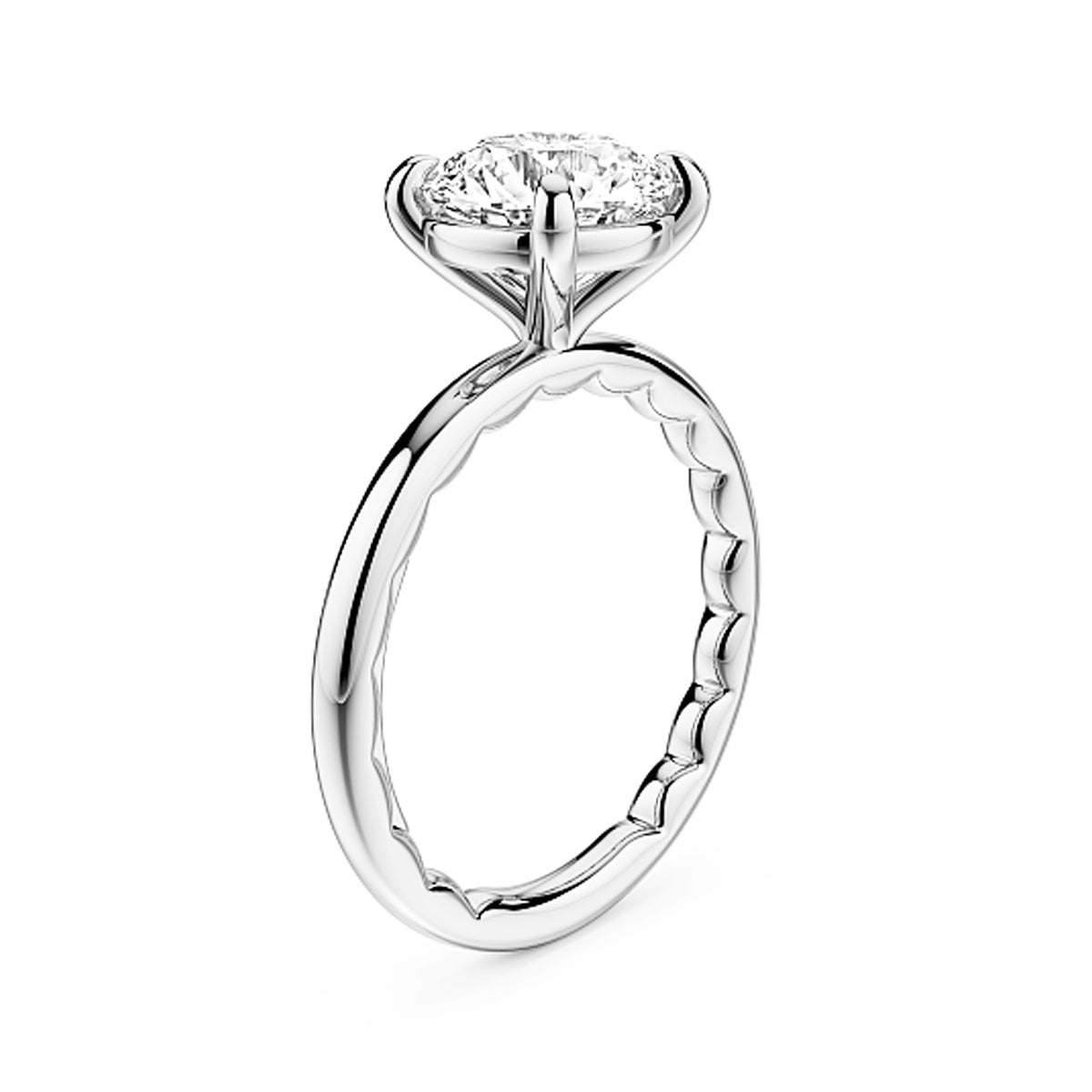 14k white gold engagement solitaire ring mounting (2ct round) "Luna" by Noam Carver, size 6.5 (scalloped inside shank)