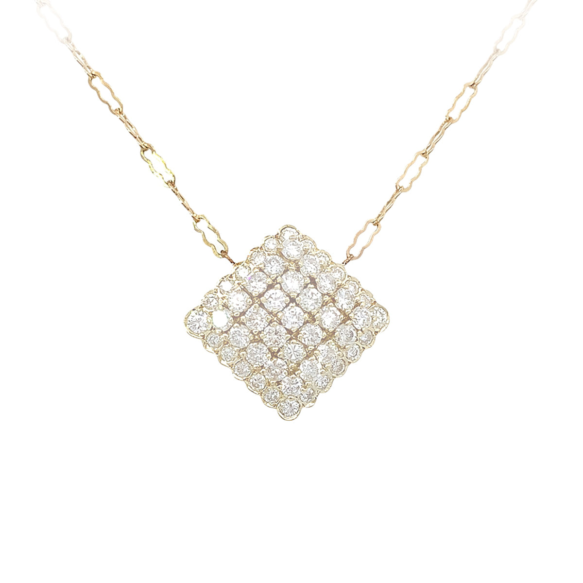 14k yellow gold 18" Vintage necklace with square 1.73ct diamond cluster center & fancy link chain