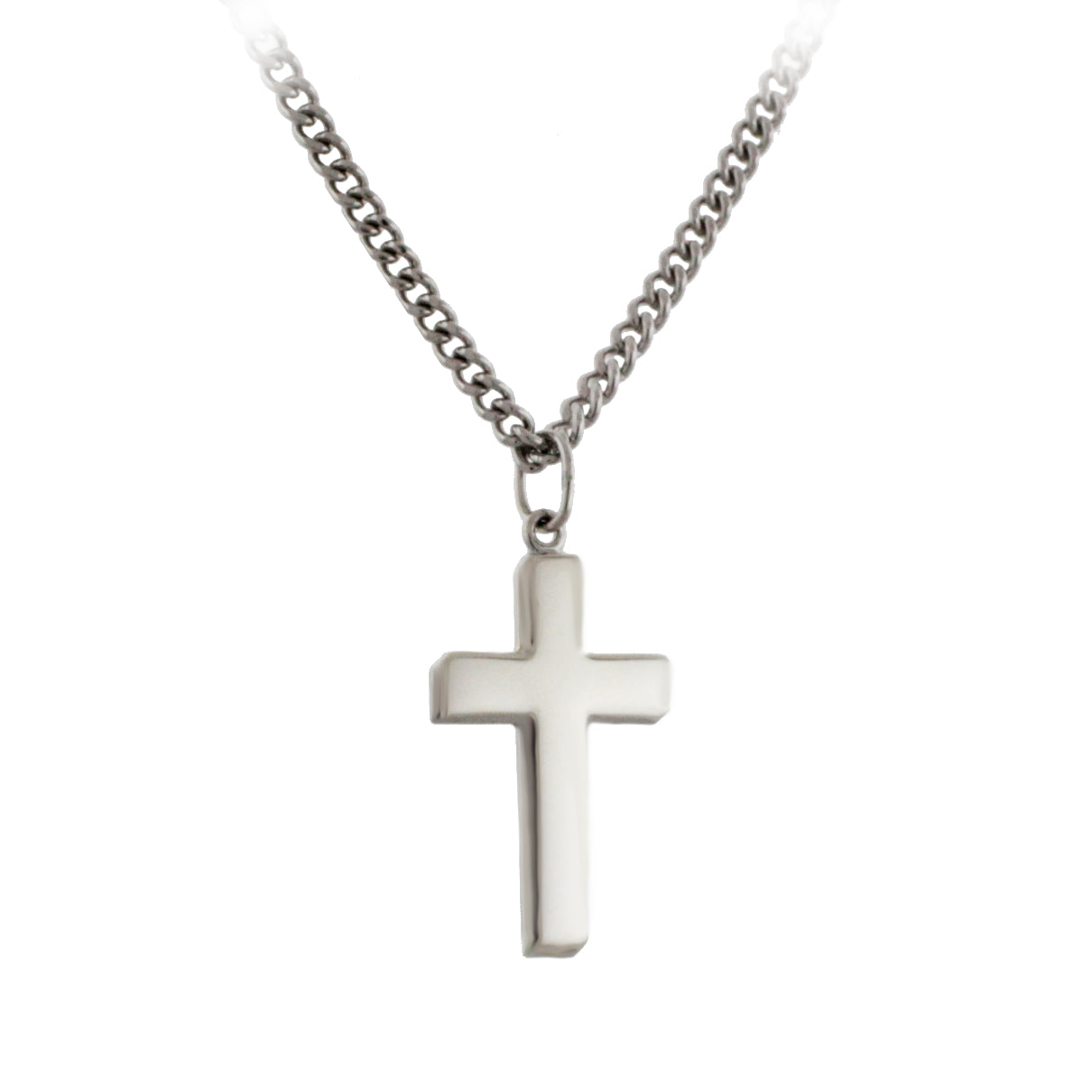 SS LARGE FLAT/FAT SHINY 1" OFFSET BEVELED CROSS ON 24" STEEL CHAIN