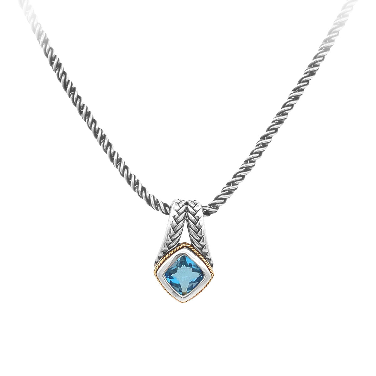 Sterling silver 18" Vintage pendant with cushion blue topaz by BH (a division of Effy) with 18ky gold trim