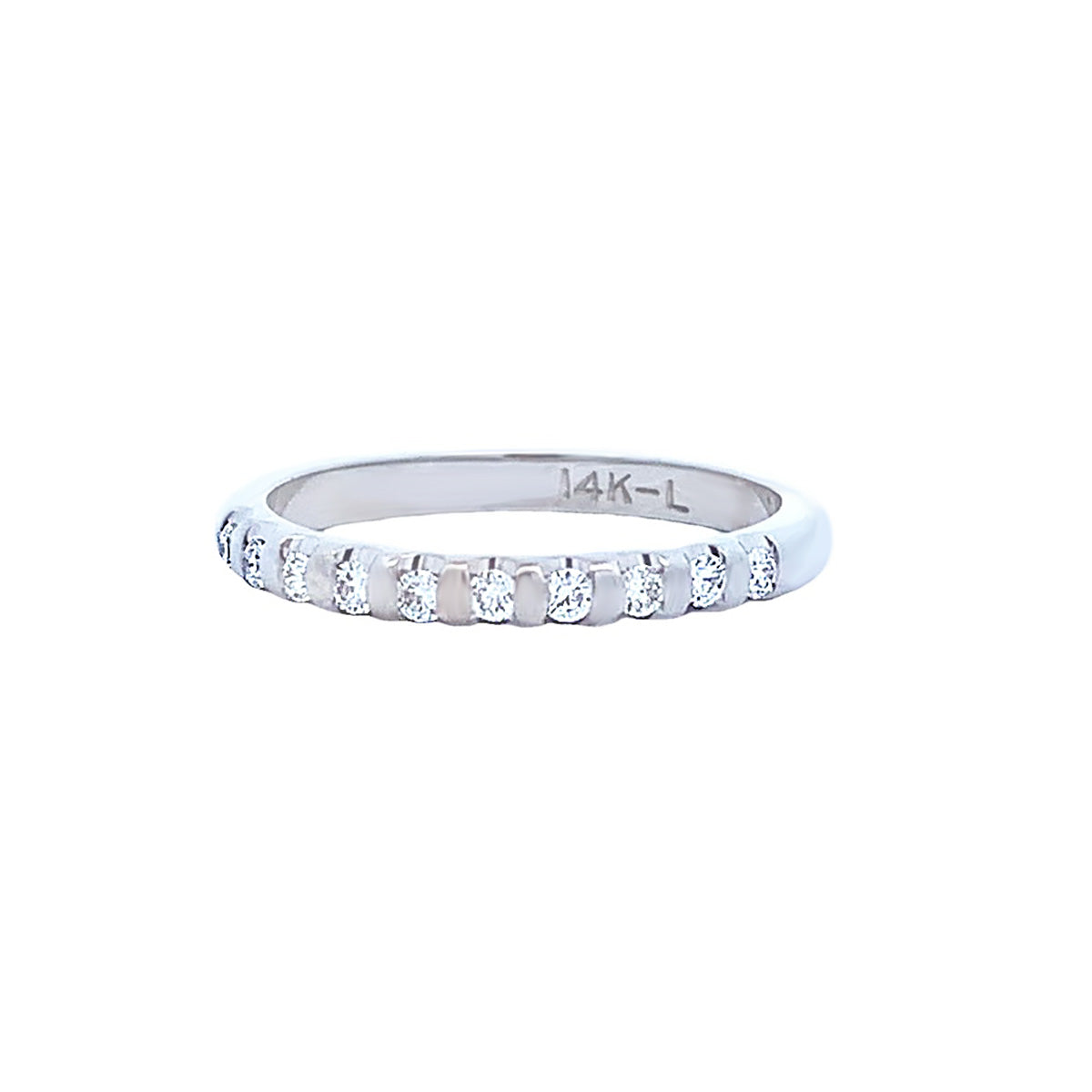 14k white gold Vintage 0.50ct bar-set diamond band, size 6.75