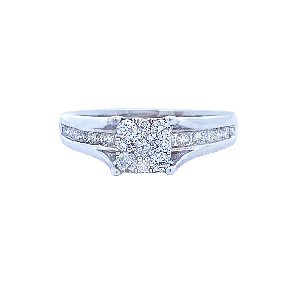 14k white gold Vintage square cluster ring with 0.45ct diamonds, size 6.25