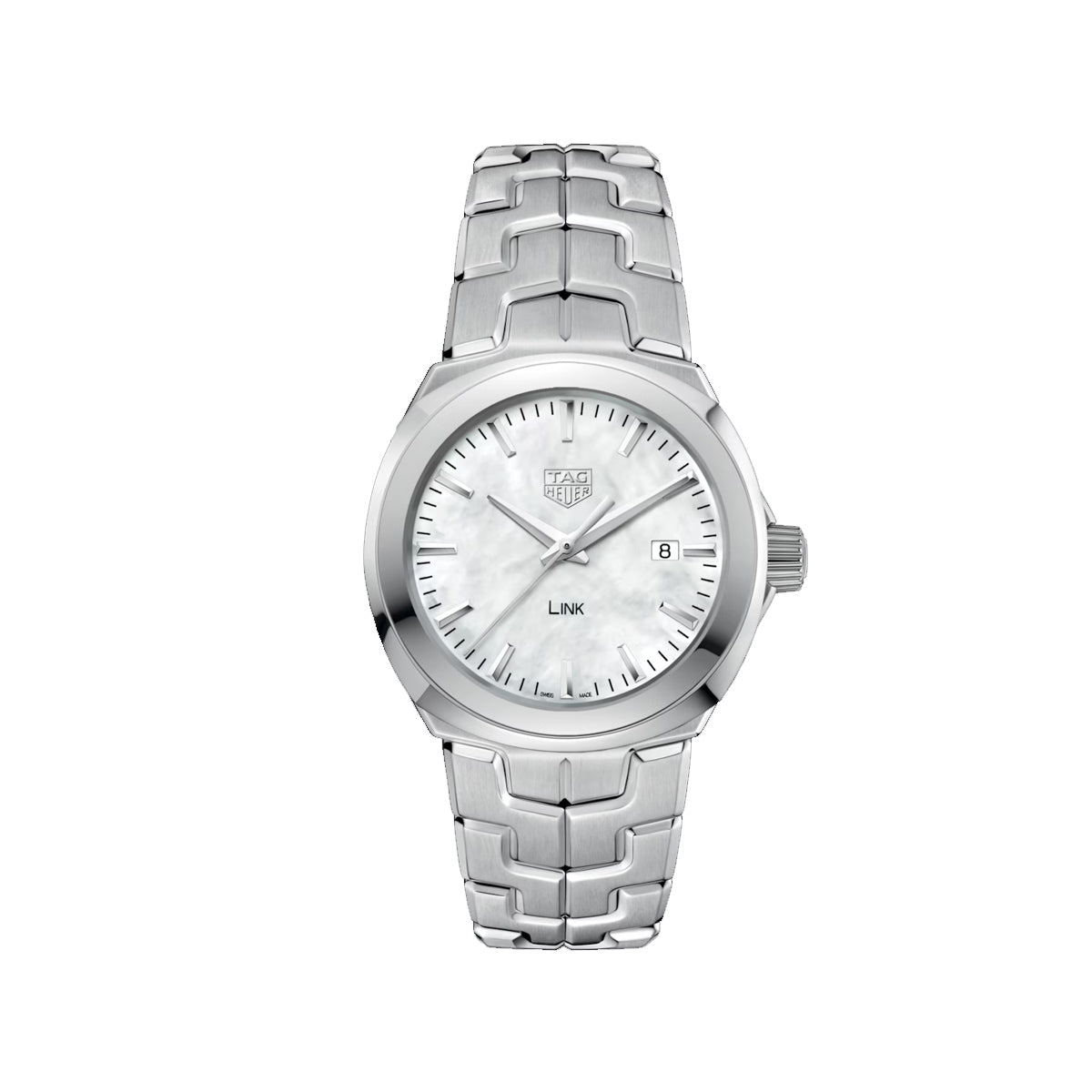 Steel 32mm Vintage Tag-Heuer "Link" quartz watch with mother-of-pearl dial