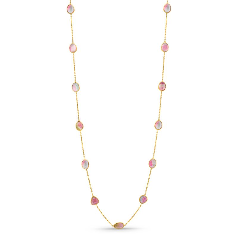 18kt Yellow Gold 36" Bezel-Set 33.03ct Watermelon Tourmaline Station Necklace By Tresor Collection