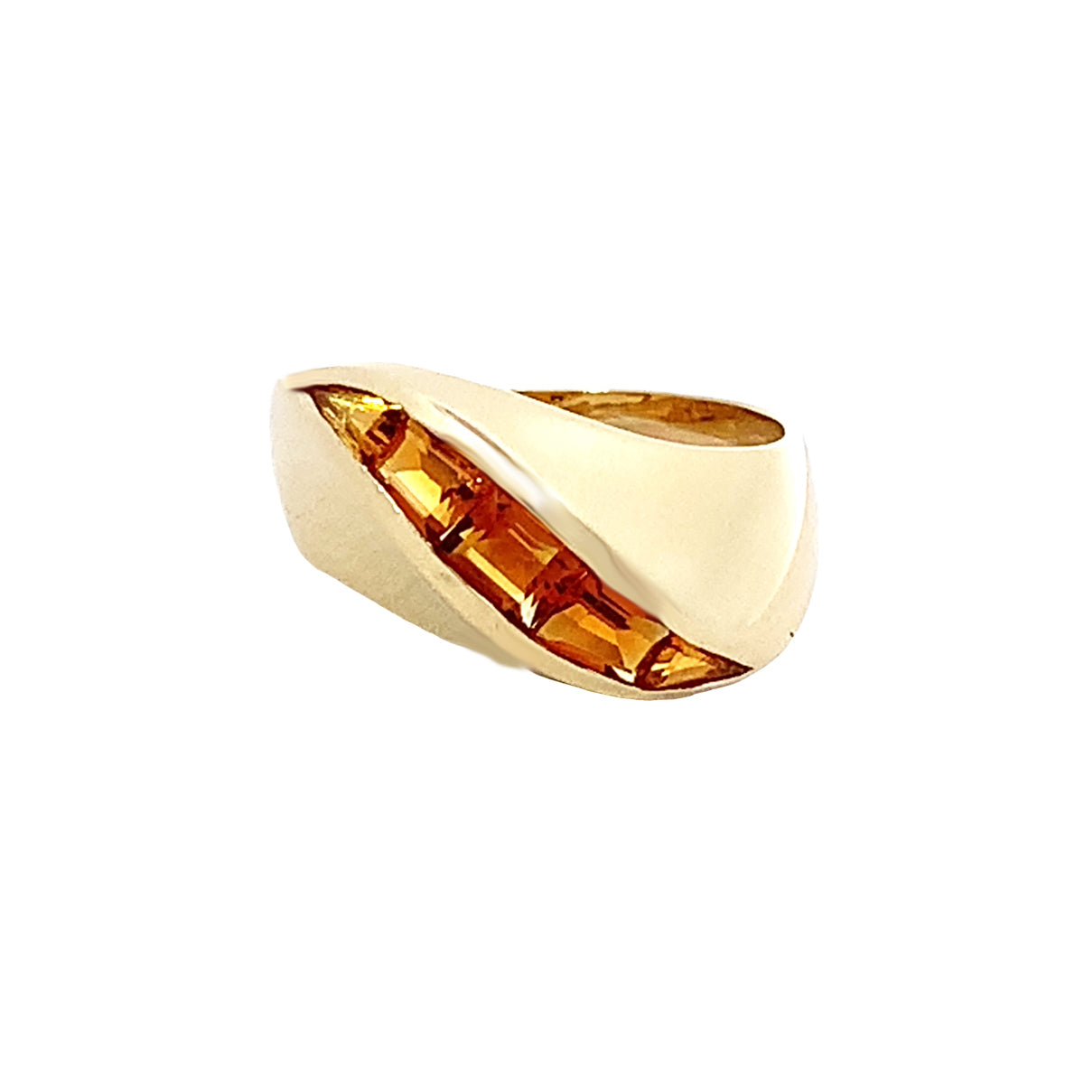 14kt yellow gold Vintage wavy ring set with square citrines, Size 7
