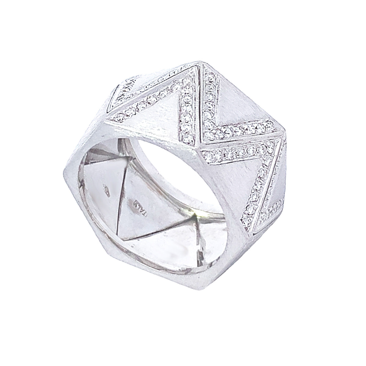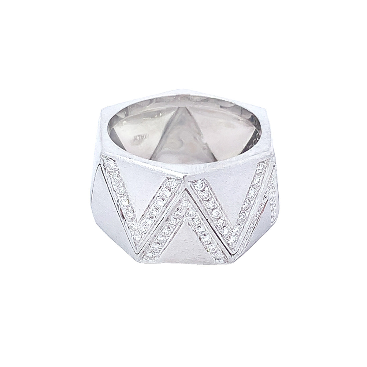 Stunning 18k white gold X-wide Vintage 0.40ct diamond Zig-Zag band with brushed finish, size 7.5 (no sizing)