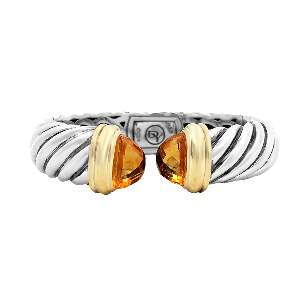 Sterling silver & 18k yellow gold Vintage David Yurman "Sculpted Cable" cuff bangle with 14x7 citrine ends