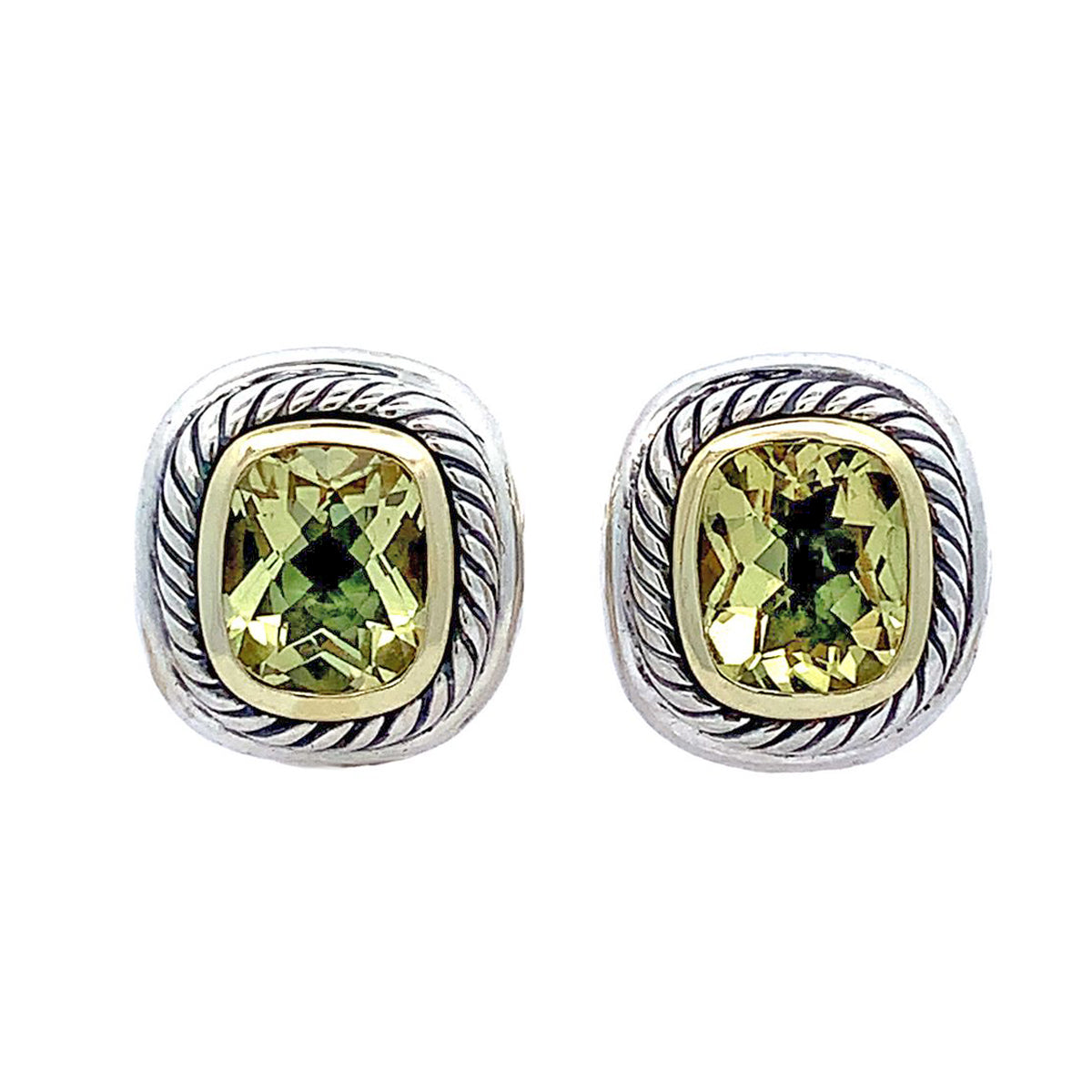 Sterling silver & 14k yellow gold 12x10 Vintage David Yurman lemon citrine "albion" cushion earrings