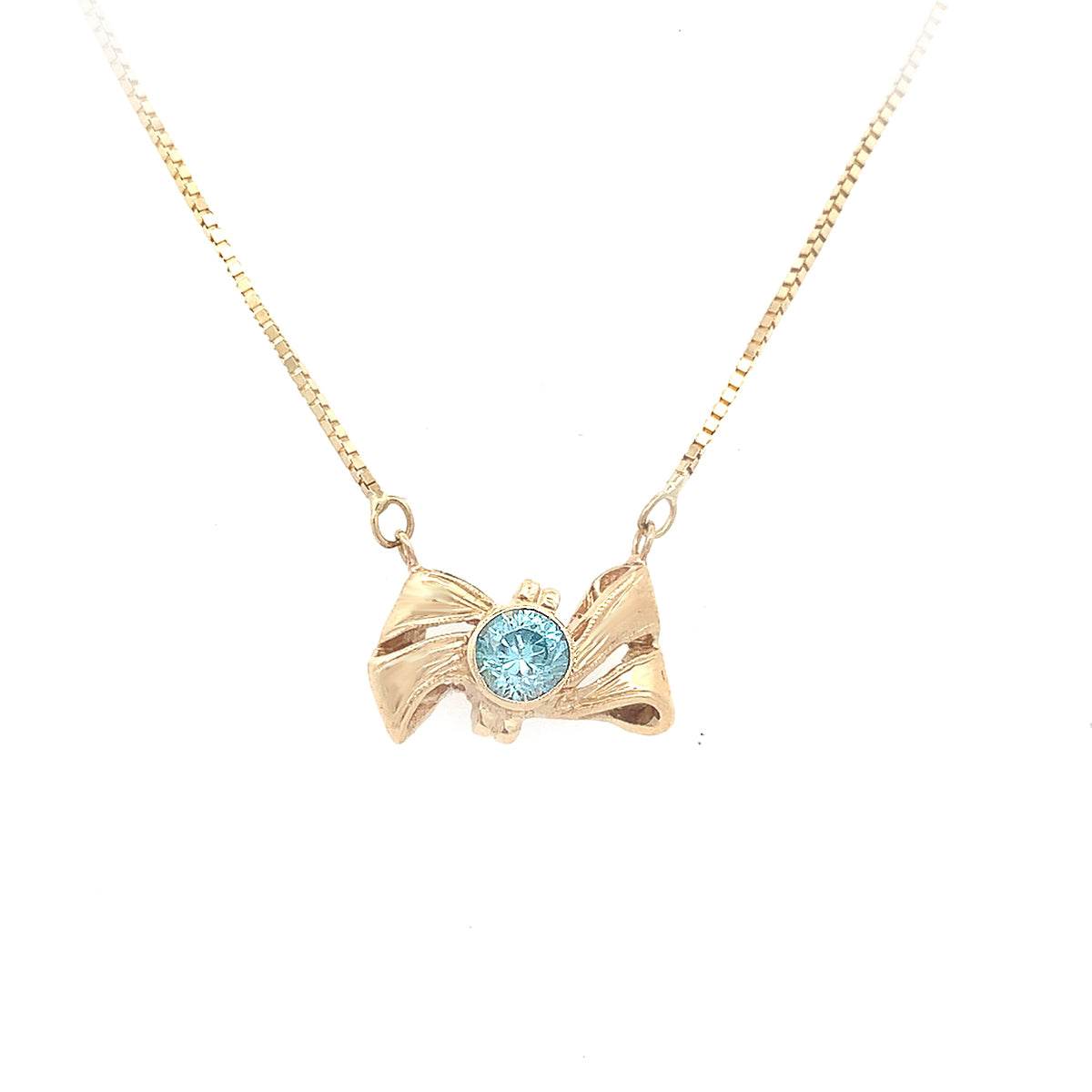 14k yellow gold 17" Vintage natural blue zircon Retro period "Bow" necklace